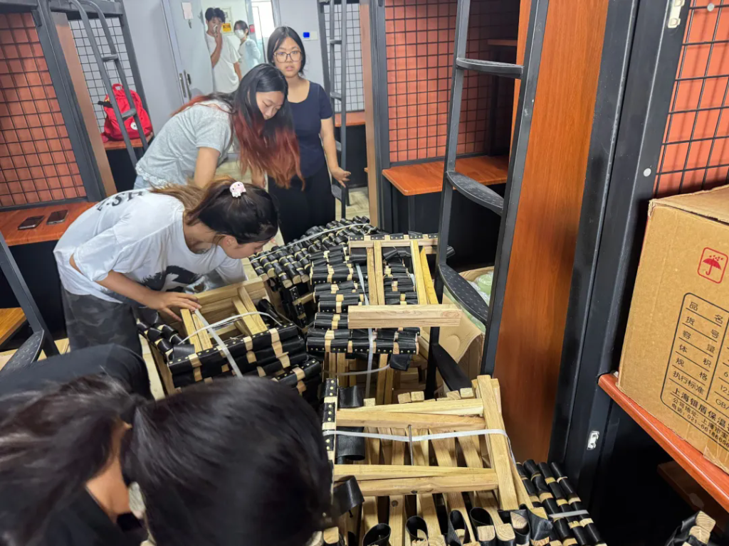 从午后的烈日当空到夜幕降临的华灯初上,服务队伍始终坚守岗位,没有片刻停歇。辅导员们一边专注搬运物资,一边还不忘梳理报到的服务细节。经过近六个小时的连续奋战,截至当晚8点,服务队伍累计为新生搬送被装约 900 套、各类生活用品超千件,所有物资均已分类存放至指定区域,为明日新生顺利报到做好了充分准备。