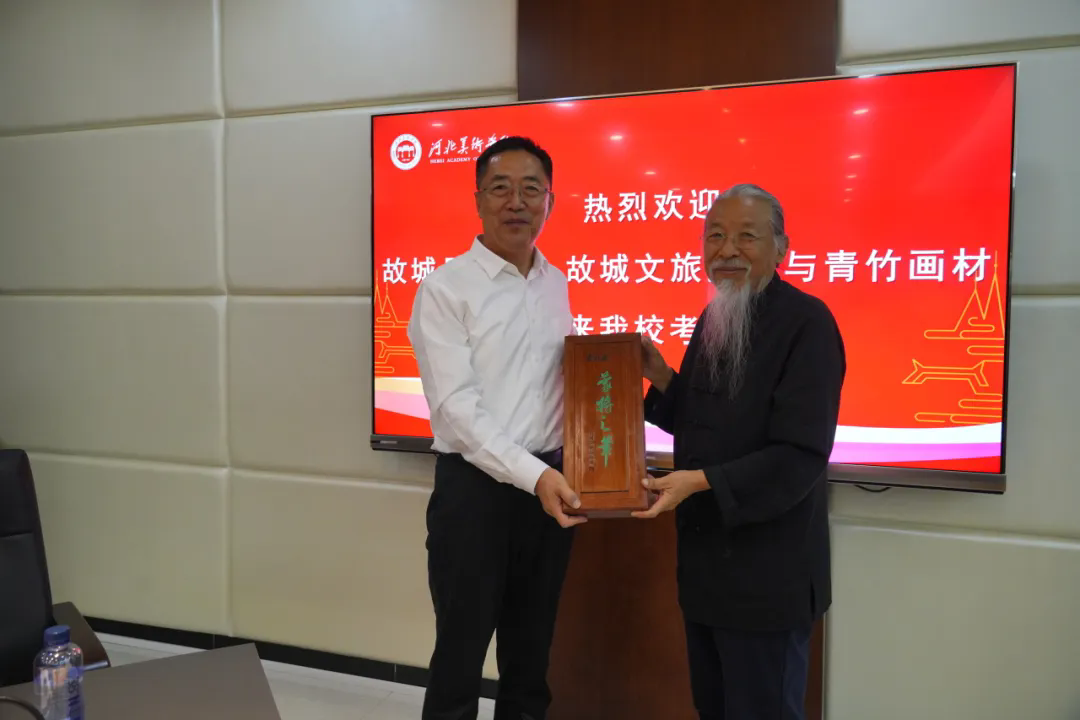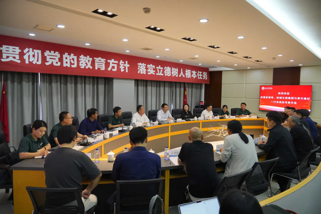 2025年9月17日,故城县副县长景永帅、县文旅集团副总王敏、河北青竹画材科技股份有限公司董事长刘其通等一行,赴河北美术学院进行考察交流,河北美术学院执行校长甄墨、设计学院党委书记、院长董小龙、副院长陈利伟、设计艺术系主任邵建明陪同考察。