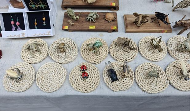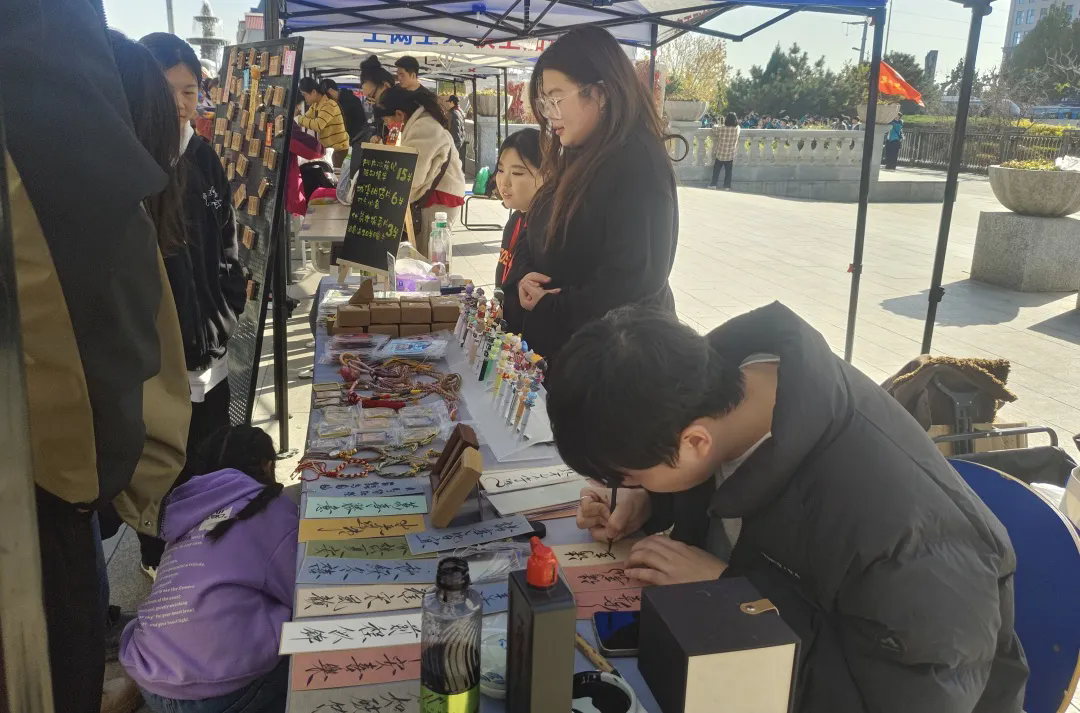 市集现场,许多作品凭借鲜明的视觉语言与文化元素吸引了游客驻足。布糊画被开发成家居摆件,传统纹样被融入首饰设计,手绘图案生成文创周边,雕刻元素转化为时尚饰品。作品从“可观看”走向“可购买”,从“单件创作”走向“小型产品体系”,体现出学院在推动非遗创造性发展与学生创新表达上的教学成果。面对真实消费者的反馈,学生不断调整设计细节、推介方式与展示形式,在互动中获得课堂无法模拟的实践经验。
